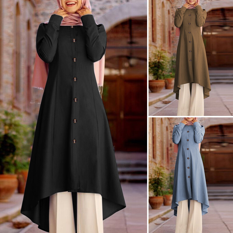 ZANZEA Women Muslim Dubai Evening Long Tops Button Down Solid Tunic Shirt Blouse