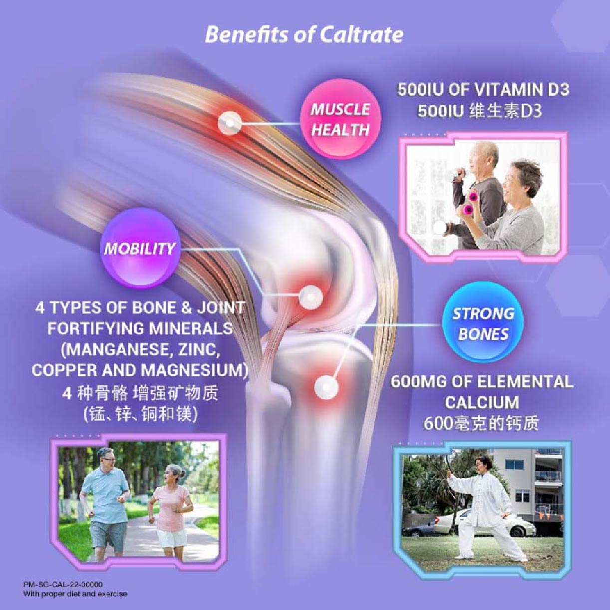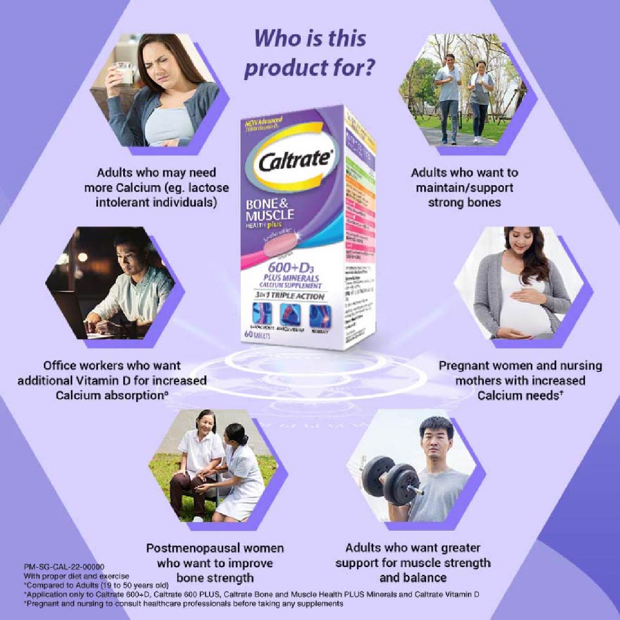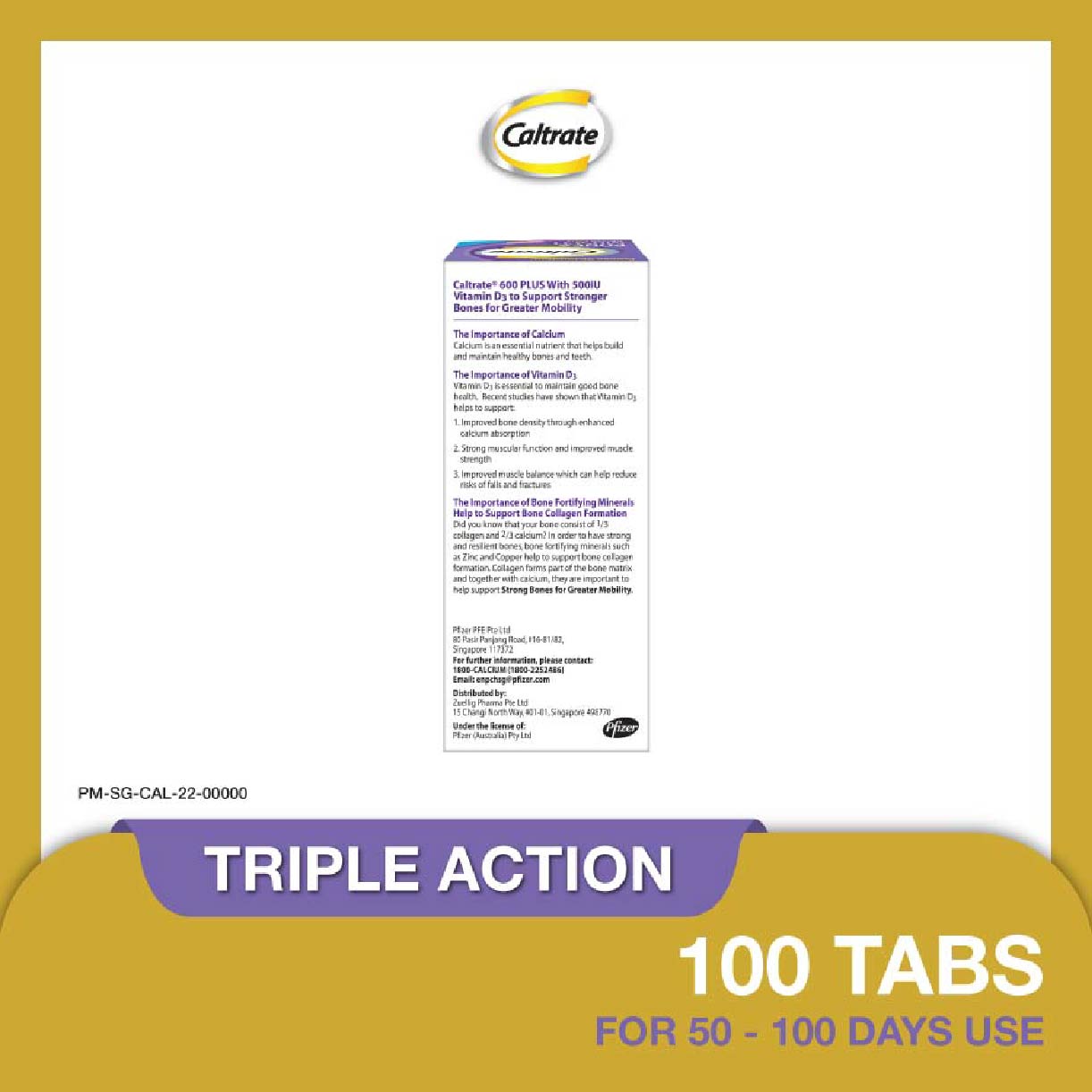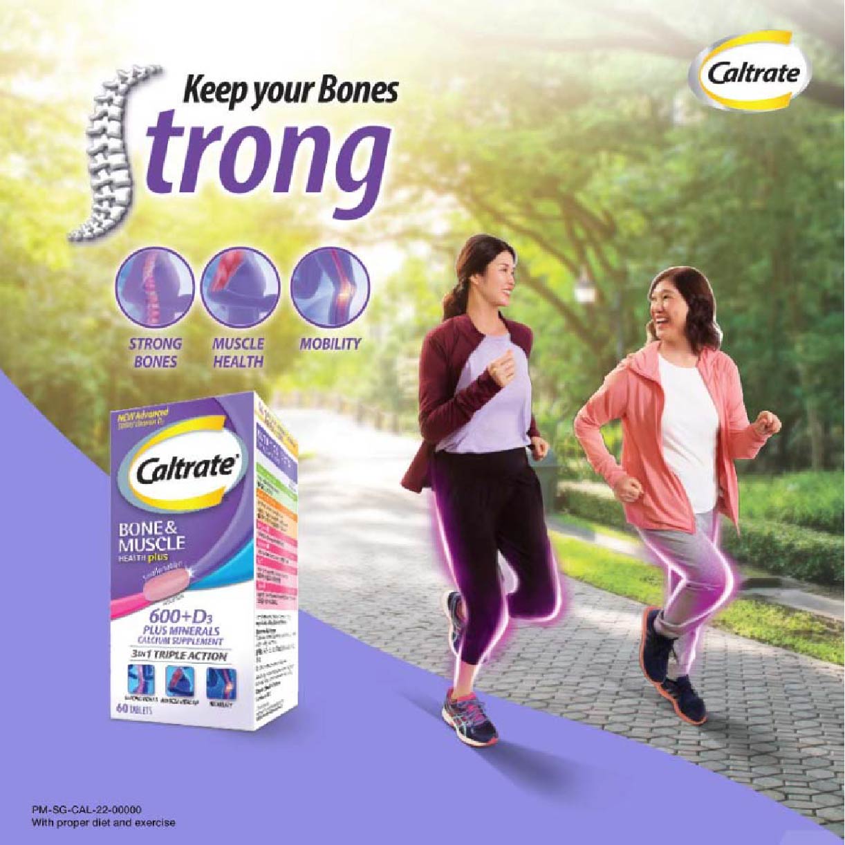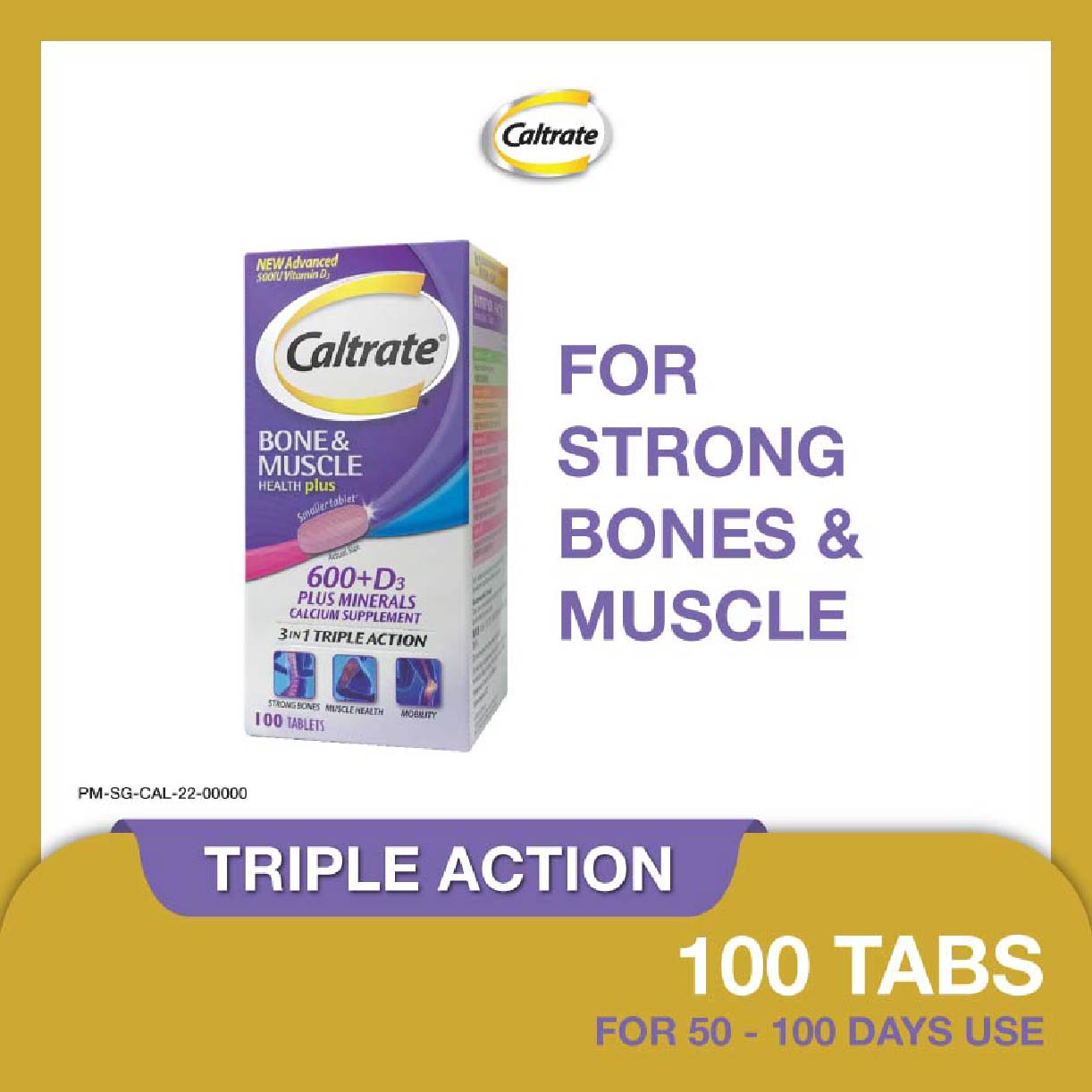 Caltrate Bone & Muscle Health Plus Triple Action Calcium + Vitamin D + Minerals Supplement Tablet (For Strong Bones & Muscles) 100s Recent scientific studies indicate that daily intake of Vitamin D helps maintain healthy bones and muscles. Vitamin D plays an important role in supporting muscle strength hence supporting muscle balance, which are important for prevention of falls which may lead to subsequent fractures. Vitamin D also helps in optimal Calcium absorption to maintain strong bone health. Based on clinical studies, the Vitamin D contained in Caltrate can support muscle strength, helping to reduce overall fracture risk in both men and women. MAHS2000216 **Where applicable, items have a minimum of nine-month shelf life before expiry unless otherwise stated on product description.