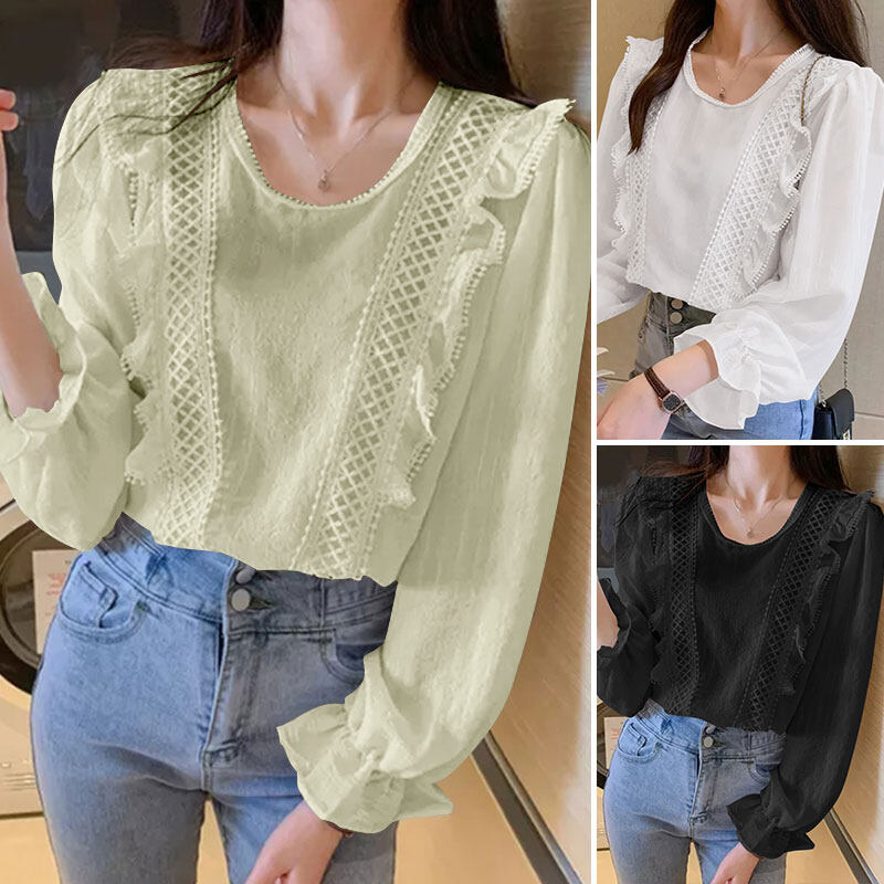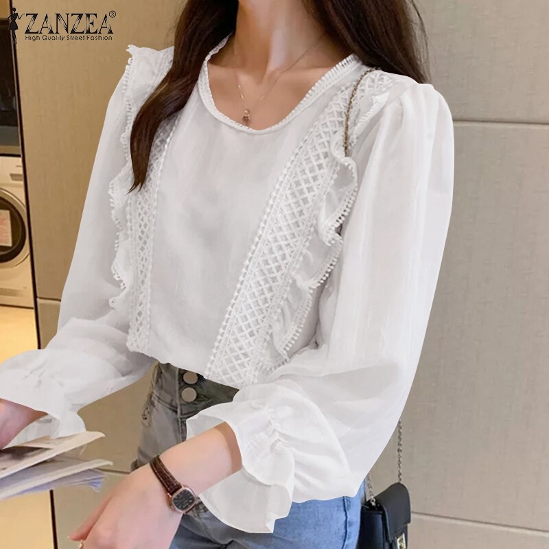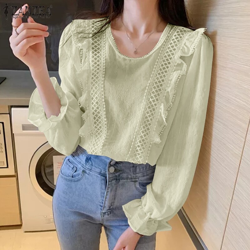 [Clearance Sale]ZANZEA Clearance Sale Womens Puff Long Sleeve Ruffles Shirt Office Cargo Loose Tops Blouse CLE