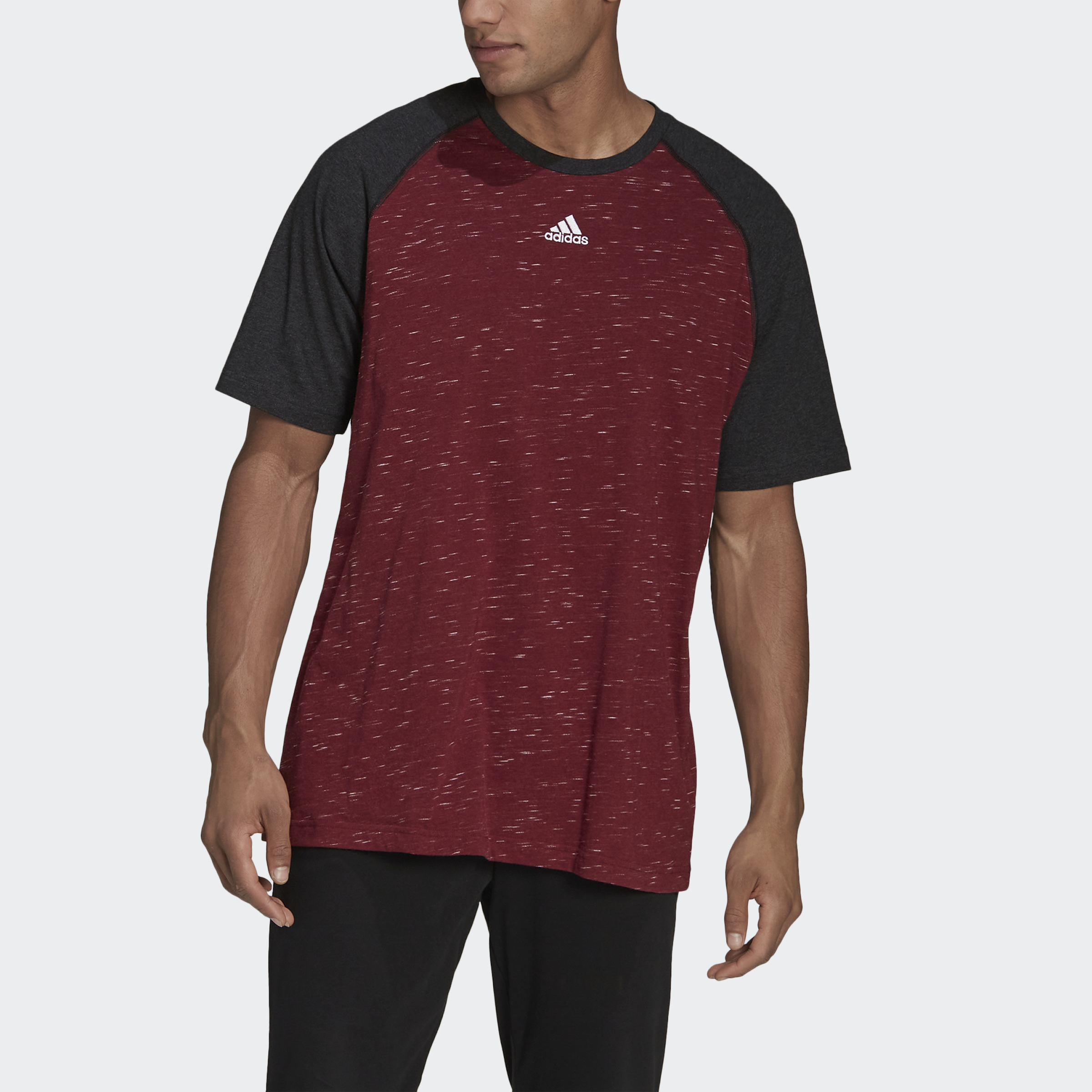 Comfort and style. This adidas t-shirt has plenty of both. This shirt is made of all-cotton single jersey that is super soft, and it has a crewneck and raglan sleeves for a look that's totally classic. It's cut to fit a bit loose, so you can roll through whatever's on your to-do list without distractions. A small adidas Badge of Sport on the upper chest signs off on the whole package.
